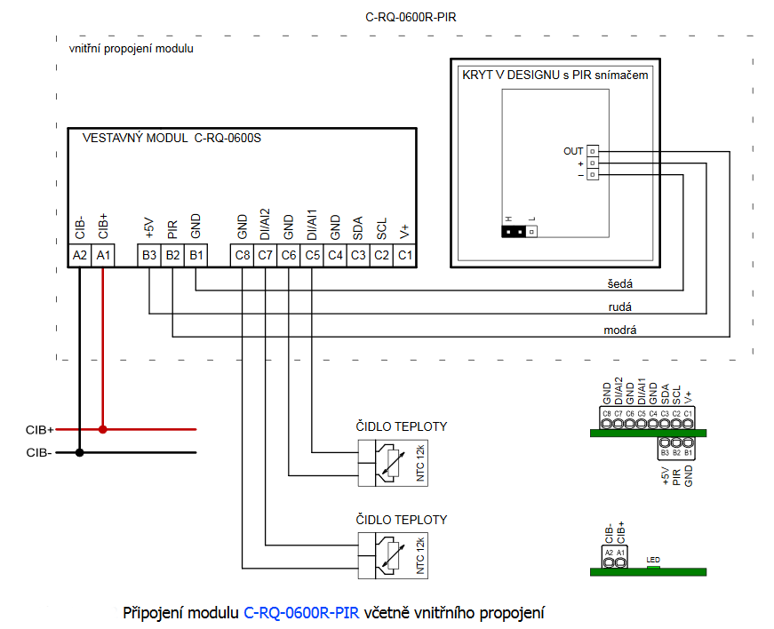 - C-RQ-0600R-PIR - ...ožno po dohodě doplnit čidlo teploty nebo kombinované čidlo teplota a vlhkost. Modul se skládá ze sběrnicové vestavné části C-RQ-0600S a designové části, která se skládá z mechaniky (záslepky) v příslušném designu a v ní upevněném senzoru, viz obr....