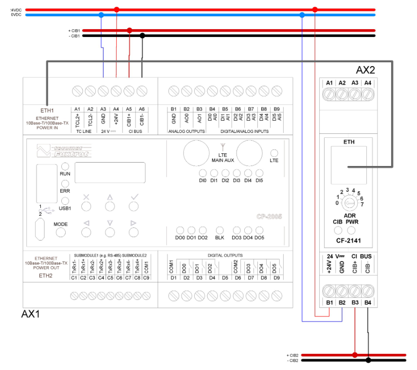 CF-2141; CIB; 1x master sběrnice CIB s napájením, celkem pro 32 slave, komunikace s CP: Ethernet - pouze pro Foxtrot 2